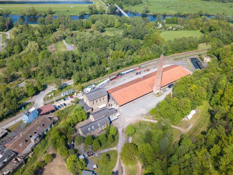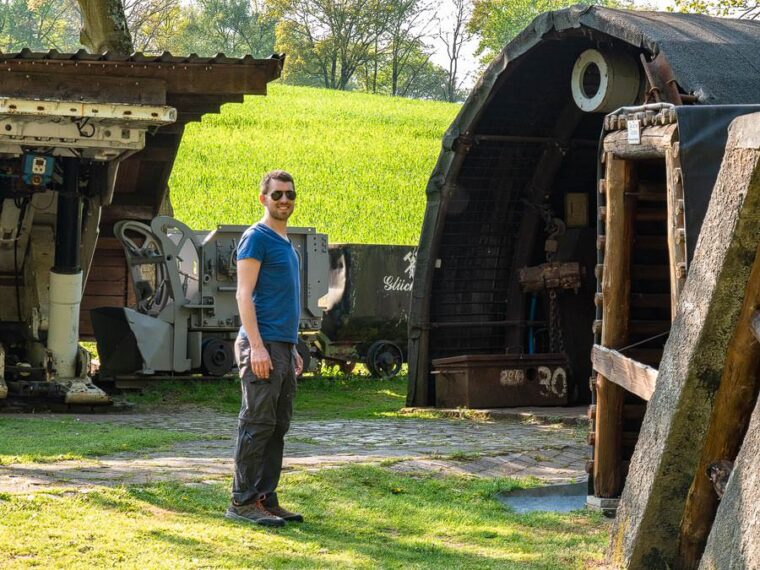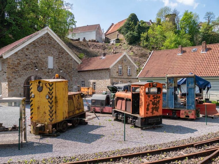 Der Weg zieht sich einige Hundert Meter an der Straße vorbei und hier kannst du bereits ein kleines Stollenmundloch sehen, einen Vorgeschmack auf viele weitere, die auf dem Weg auf uns warten. Klein und unscheinbar liegt der Zugang zum Stollen in dem Berg an der Straße vor uns. Ein paar Meter weiter befinden wir uns vor dem Gruben- und Feldbahnmuseum Zeche Theresia. Leider ist das Grundstück verschlossen und das Museum nicht geöffnet. Von außen können wir allerdings bereits einen guten Eindruck davon bekommen, welche alten Schätze hier aufbewahrt werden und für die Nachwelt erhalten bleiben. Bei einigen kann man den Zahn der Zeit sehen, der an ihnen genagt hat.