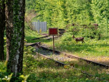 Bereits auf dem kleinen Fußweg zur Zeche Nachtigall sind wir begeistert. Ein Reh steht still vor uns auf den alten Gleisen. Dazwischen zwitschern die Vögel. Alles ist ruhig und friedvoll. Wenige Meter weiter wartet ein Graureiher auf uns, der auf einer Wiese nach Beute Ausschau hält.