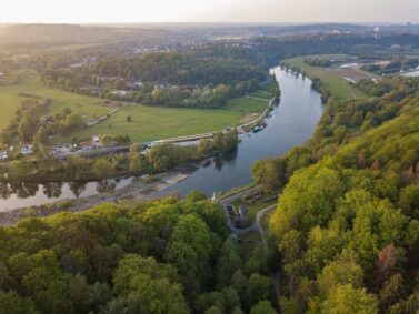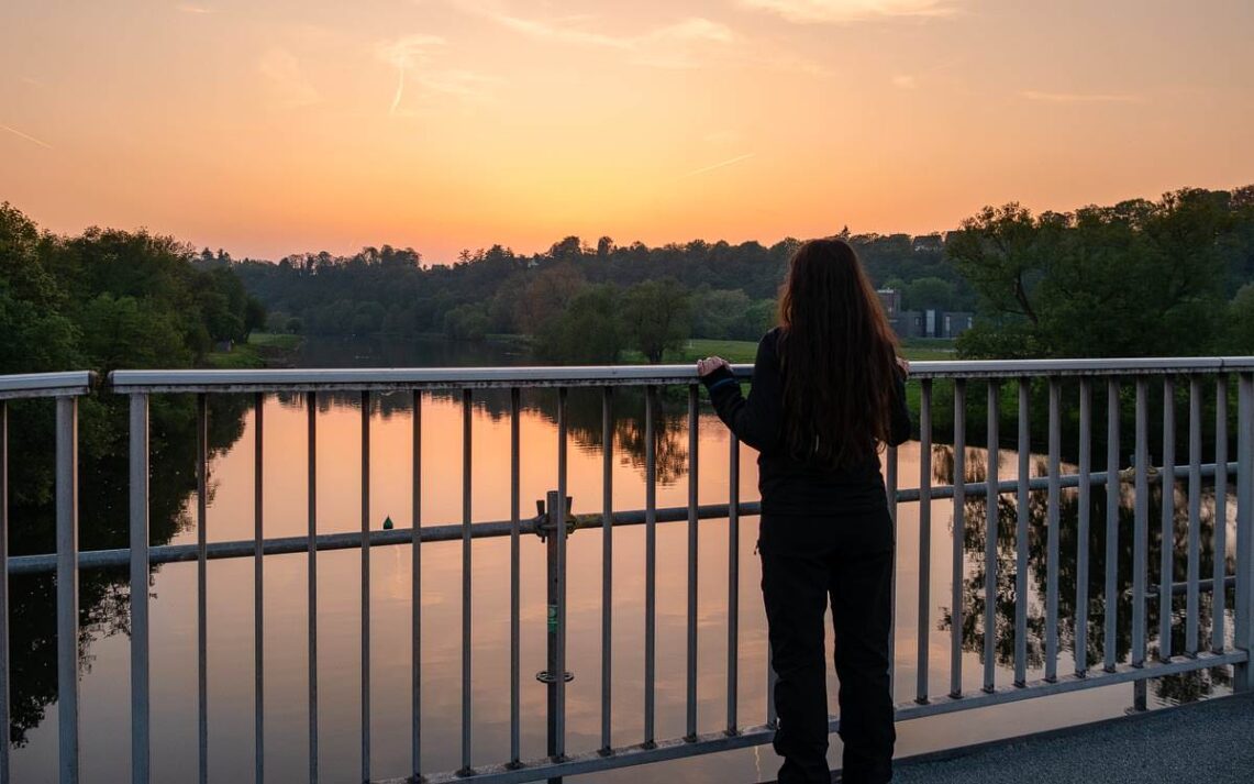 Wunderschön ist der Blick über das Wasser, auf dem sich die untergehende Sonne spiegelt. Eine tolle Wanderung liegt hinter uns mit vielen fantastischen Eindrücken von der hübschen und idyllischen Natur im Muttental. Ein wenig war unsere Wanderung wie eine Schnitzeljagd, bei der es viel Spaß gemacht hat die einzelnen Stationen des Bergbaus zu suchen. Hier am Fluss findet sie den richtigen Ausklang – verträumt, malerisch und romantisch. Wir bleiben eine ganze Zeit hier stehen und betrachten, wie die Wellen an das Ufer schwappen. Dann treten wir den Rückweg zum Auto an.