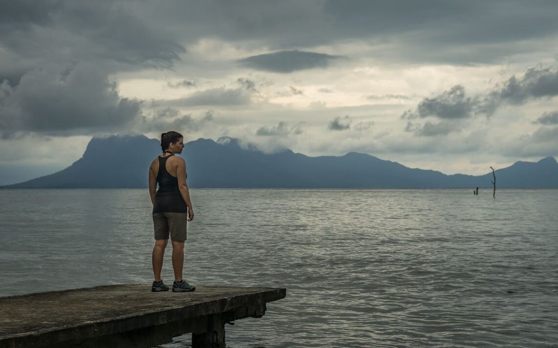 Die Regenschauer kommen zu dieser Jahreszeit schnell und heftig. Und wenn es einmal angefangen hat, in den Tropen zu regnen, hört es erst einmal nicht mehr auf. Wir kommen wieder am Bootsanleger vorbei, die Stimmung ist mit den aufziehenden Wolken ganz besonders. Es wird kühl, der Wind nimmt zu und gleichzeitig ist es so friedlich und ruhig hier. Wir halten einen Moment inne und laufen dann die letzten Meter passend mit dem beginnenden Regen zum Hauptquartier zurück, gerade rechtzeitig um uns von unserer Tour auszutragen.