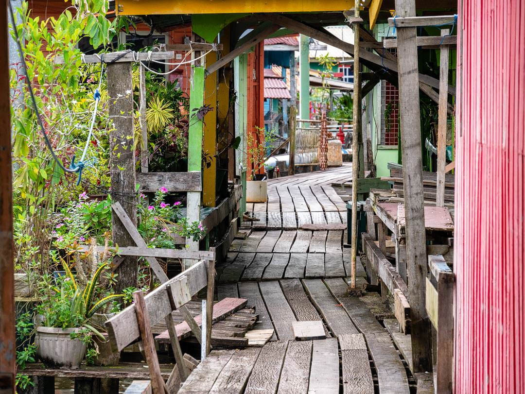 Verlassen liegt das Wasserdorf vor uns