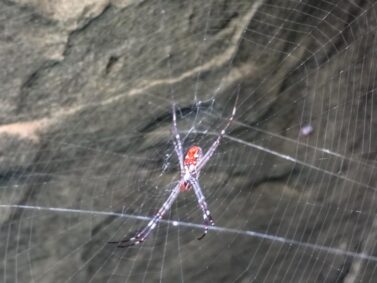 Unter uns im Wasser des Katherine Gorge soll Mythen und Erzählungen der Ureinwohner nach, eine große Schlange leben, die Regenbogenschlange (Rainbow Serpent). Sie nimmt eine zentrale Rolle im Glauben der Jawoyn ein und wird mit dem Leben selbst in Verbindung gebracht. Der Wasserlauf ist also heilig. Hier ist eine der tiefsten Stellen der Schlucht. Bei um die 30 Meter Tiefe wäre hier auf jeden Fall genug Platz für eine spirituelle Riesenschlange.