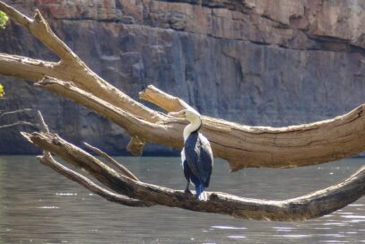 Wir kommen an den ersten Sandbänken vorbei und tatsächlich, da sehen wir sie – Süßwasserkrokodile! Bei uns auch als Australienkrokodile bekannt. Sie liegen auf dem Sand in der Sonne und bewegen sich nicht. Groß sind sie nicht und ihre schmale, spitze Schnauze unterscheidet sie von den Salzwasserkrokodilen. Was für ein toller Anblick! Aber natürlich ist es nun noch einmal etwas anderes, über das Wasser zu fahren, denn nun haben wir gesehen, dass es sie wirklich gibt und die Luftblasen im Wasser von Krokodilen unter uns stammen müssen. Allerdings leben die Krokodile nur im ersten Gorge, was uns beruhigt. Und so fahren wir weiter.