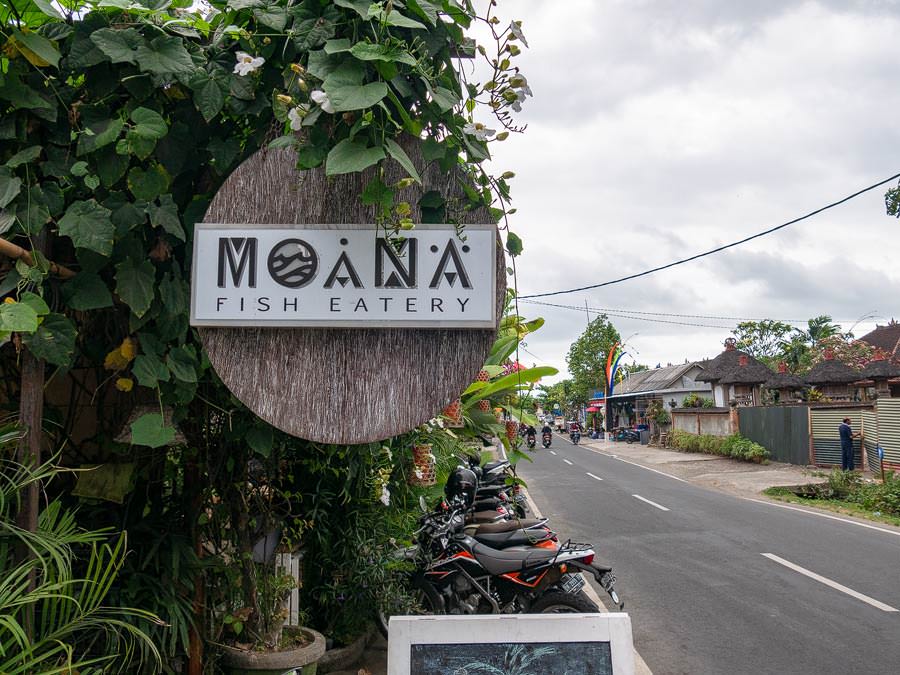 Versteckt hinter grünen Pflanzen liegt das Restaurant