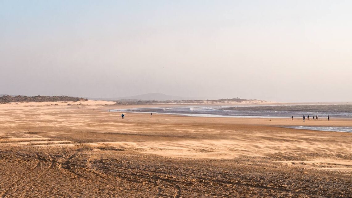 Der weitläufige Sandstrand in Essaouira ist ein Mekka für Kitesurfer und Windsurfer und bietet einen Wahnsinnswind. Er befindet sich nicht weit von den Stadttoren der Altstadt Essaouiras entfernt und geht sehr flach ins Meer. Eine breite Promenade zieht sich am Wasser entlang und du hast einen tollen Blick auf das Wasser.