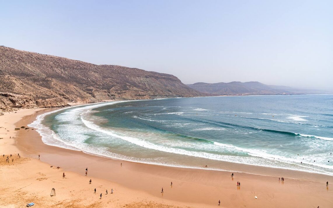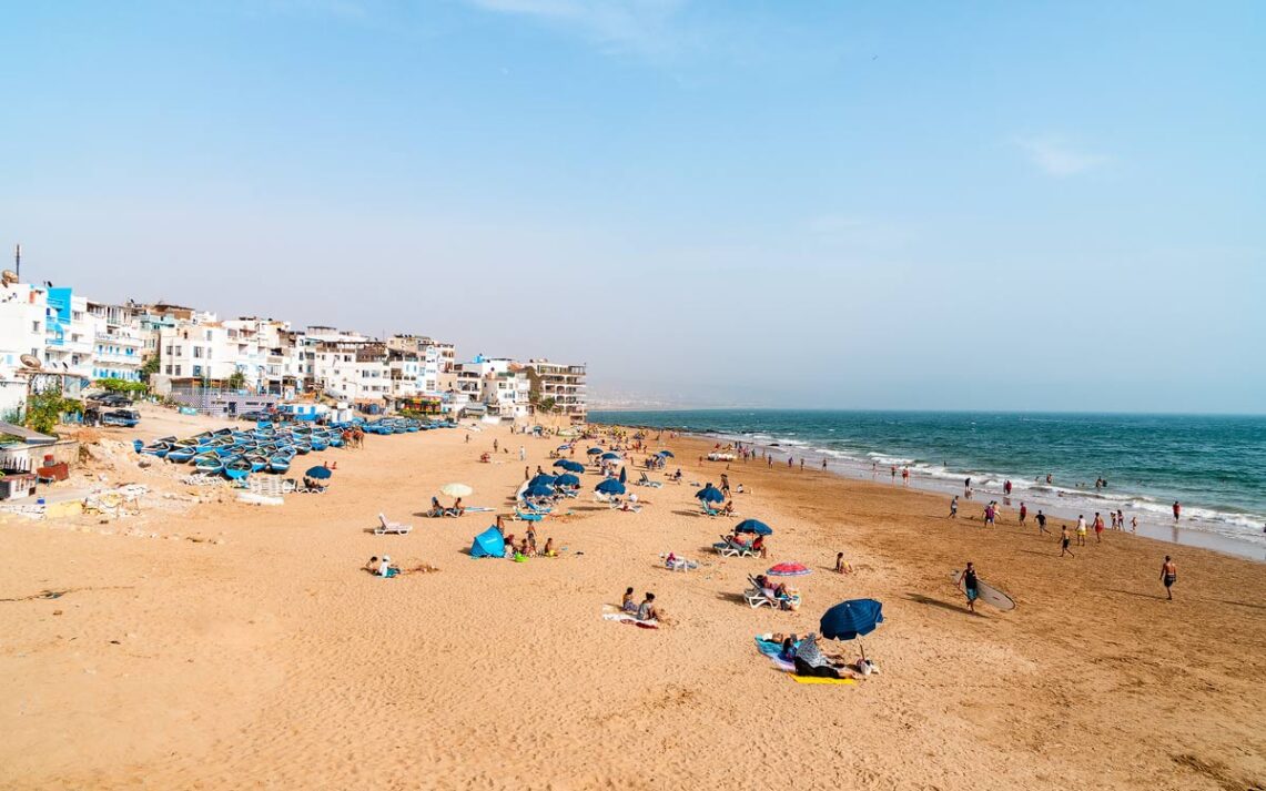 Der kleine Ort Taghazout zwischen Agadir und Essaouira ist unter Surfern beliebt. Klein und ruhig befindet er sich an der Atlantikküste. Es gibt mehrere Strände, von denen der große Plage Taghazout zum neuen Touristenzentrum mit weitläufigen Hotelanlagen ausgebaut wird.