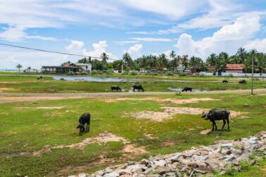 Aber auch das Gebiet um die Lagune in Arugam Bay ist wunderschön. Sowohl der Strand am Meer als auch die Lagune selbst, an deren Ausläufern Wasserbüffel grasen und sich im Wasser der Lagune abkühlen. Die Natur um Arugam Bay ist traumhaft und auch Nationalparks findest du hier, wie den kleinen Lahugala Kitulana Nationalpark oder den Yale East Nationalpark, der im östlichen Bereich weniger Besucherandrang erfährt als im westlichen Teil. Im Park kannst du Elefanten, Vögel und mit sehr viel Glück Leoparden sehen. Im Gebiet um Arugam Bay können dir ebenfalls wilde Elefanten auf der Straße begegnen. Während der Saison ist in Arugam Bay viel los, sowohl im Wasser als auch im Ort selbst. Neben der Saison geht es ruhig und beschaulich zu.