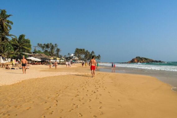 Ein weiterer toller Urlaubsort auf Sri Lanka ist Mirissa. Der Strand von Mirissa ist nicht so einsam, beschaulich und weitläufig wie der von Tangalle. Der Strand ist wunderschön und meist gut besucht. Er fällt flach ins Wasser ab und der Sand ist feinkörnig und hell. Mirissa selbst ist ein kleiner Ort, der sehr belebt ist. Hier gibt es viele gute Restaurants und Strandbars. Ein guter Surfspot für Fortgeschrittene findet sich am Strand östlich des Parrot Rock. Der Parrot Rock ist ein Felsen, der im Meer liegt und zwei Strände miteinander verbindet. Er ist sehr schön und eine Besteigung lohnt sich, besonders zum Sonnenuntergang.